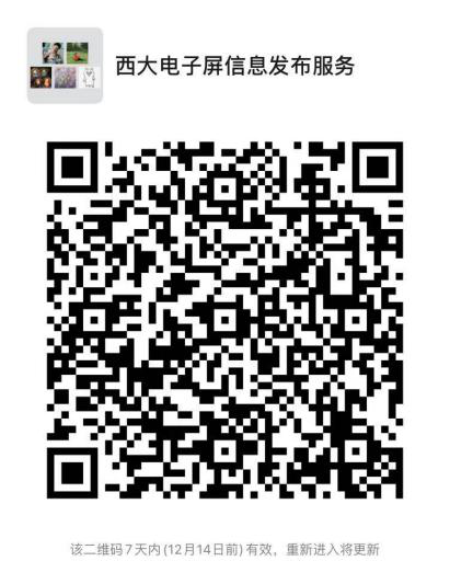 电子大屏使用单位的相关人员,可加入微信群“西大电子屏信息发布服务”,或通过咨询电话(88301234、88308813)联系我们进行技术交流。