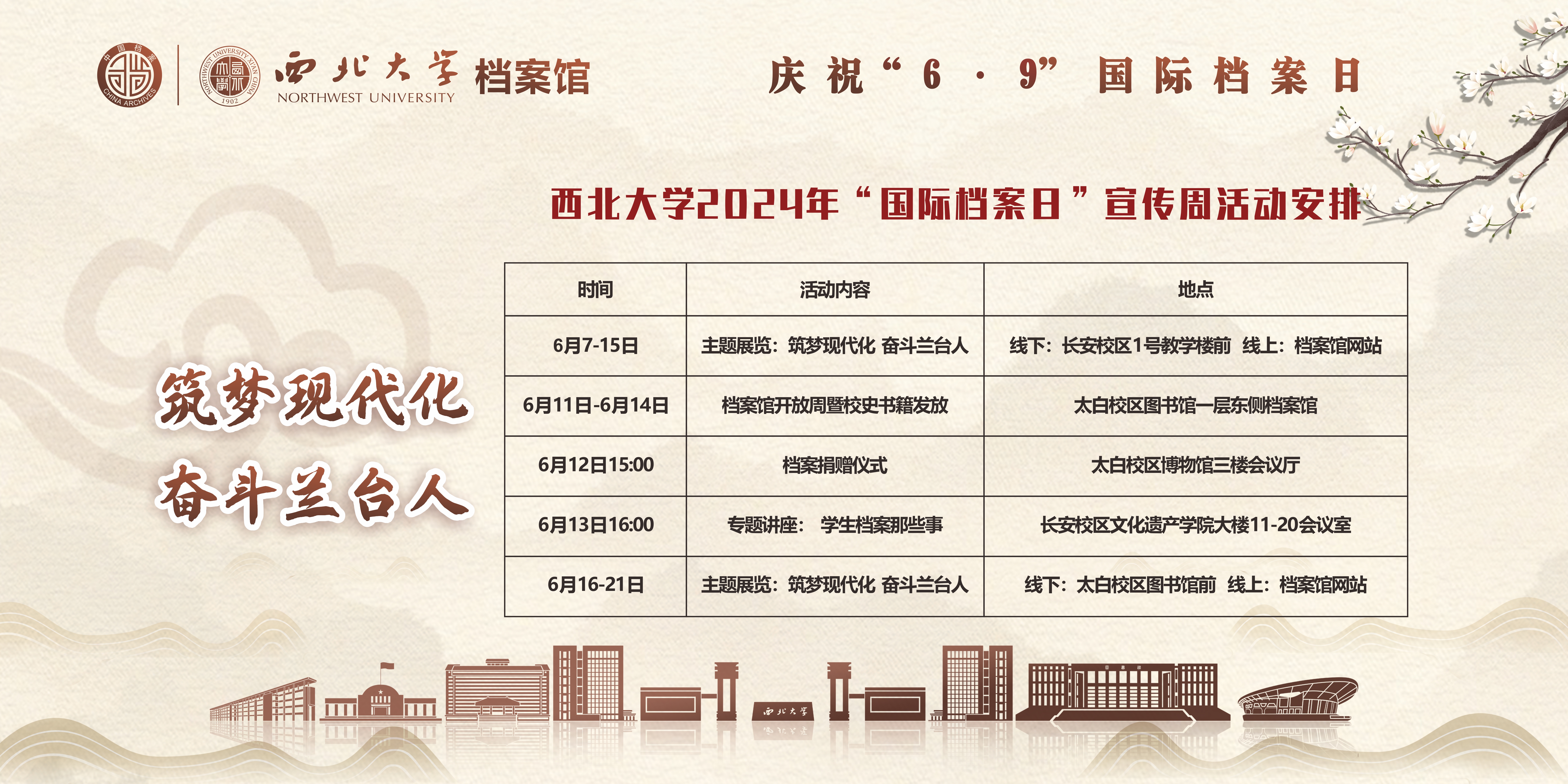 为深入学习贯彻《中华人民共和国档案法》和习近平总书记关于档案工作重要指示批示精神,聚焦存史资政育人根本任务,主动融入和服务奋力谱写“双一流”建设新篇章的历史进程,努力以档案工作高质量发展服务学校事业高质量发展,根据《国家档案局关于开展2024年国际档案日系列宣传活动的通知》等文件精神,学校举办主题为“筑梦现代化 奋斗兰台人”的第十届星空app官网国际档案日宣传周活动。具体活动安排如下,欢迎广大师生参加!