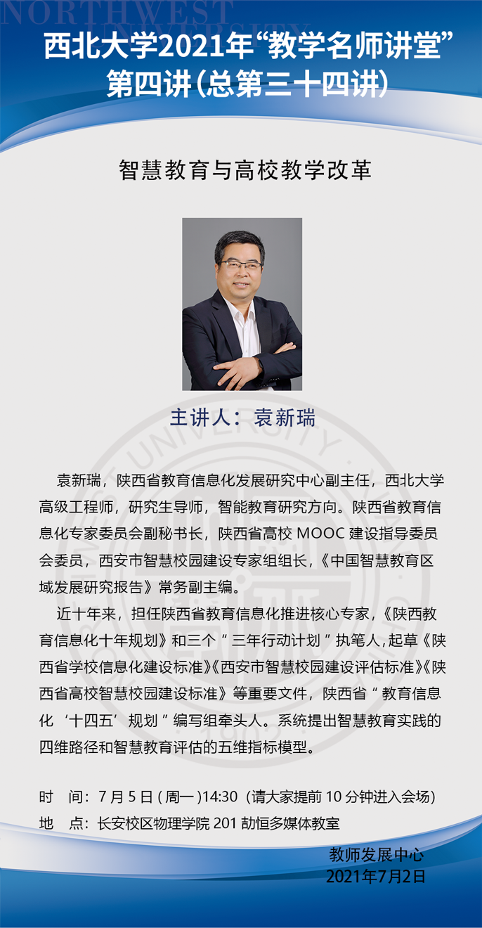 2021年教学名师讲堂第四讲 —— 智慧教育与高校教学改革