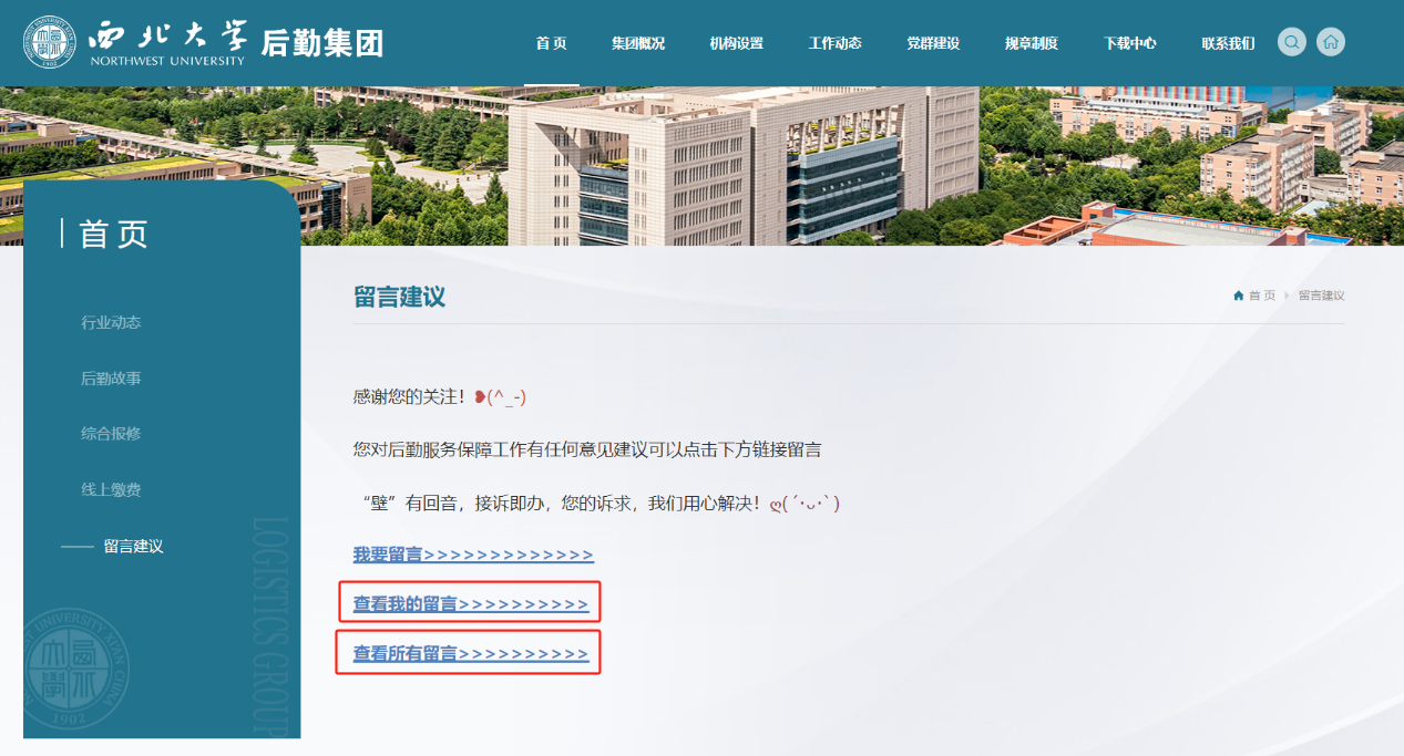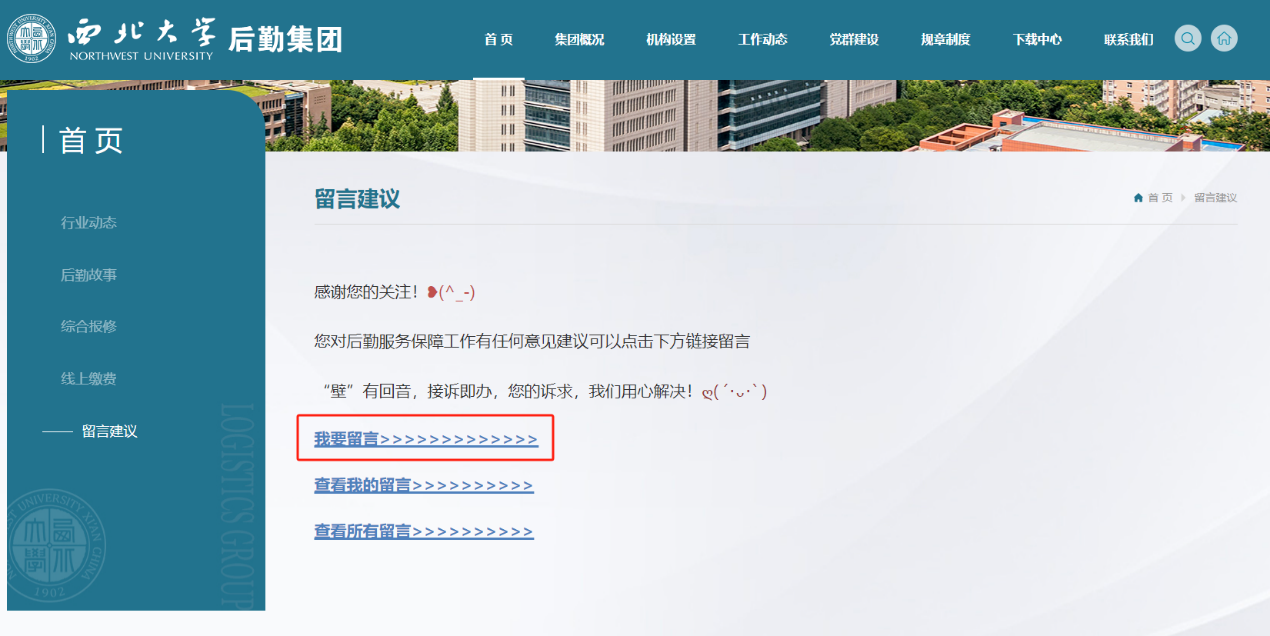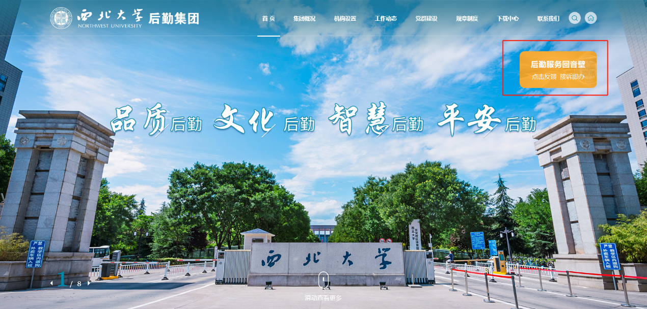 2.进入后勤集团网站星空官方网站(中国)后,点击右上角“后勤服务回音壁”;