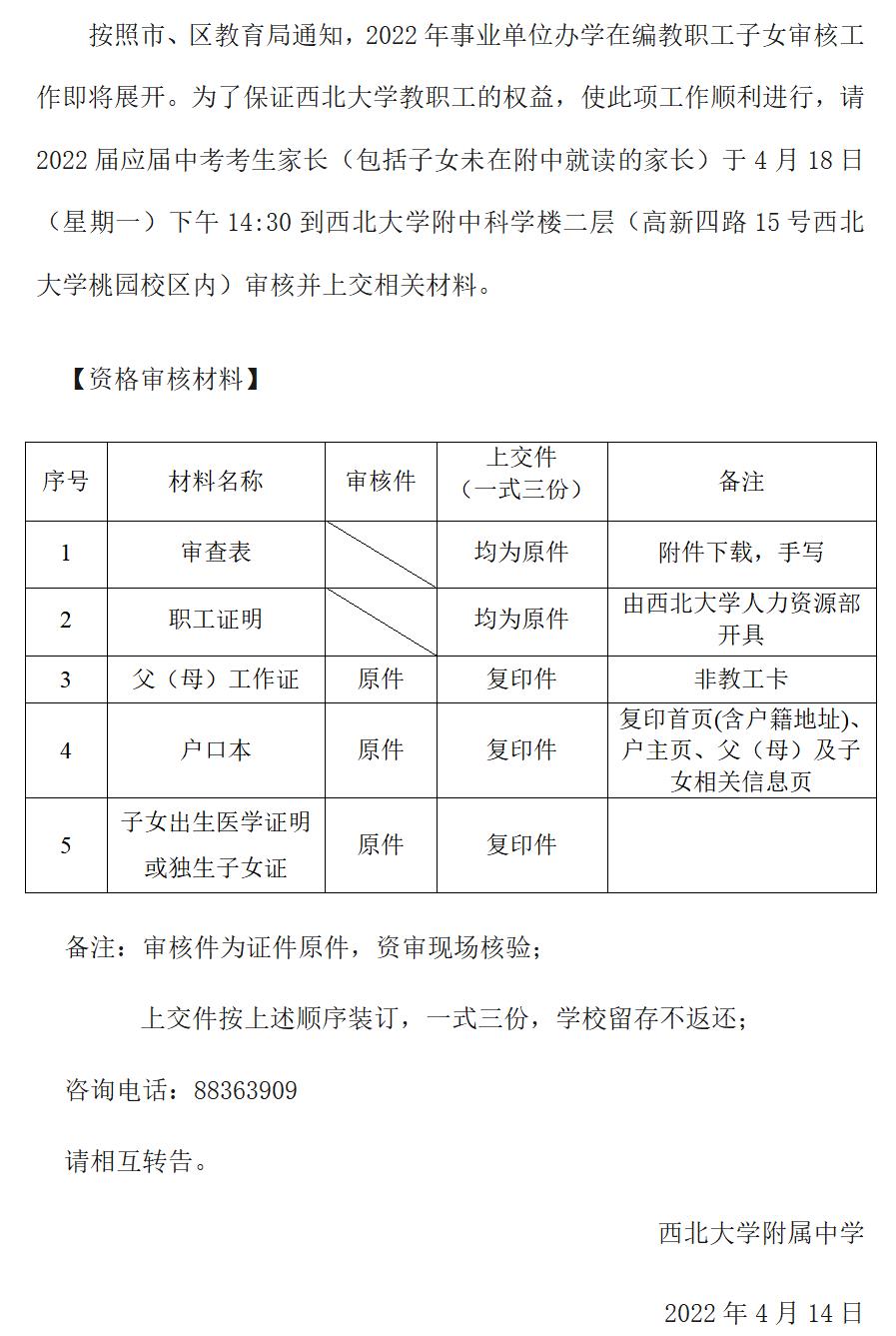 关于确认2022届中考星空app官网教职工子女身份的通知