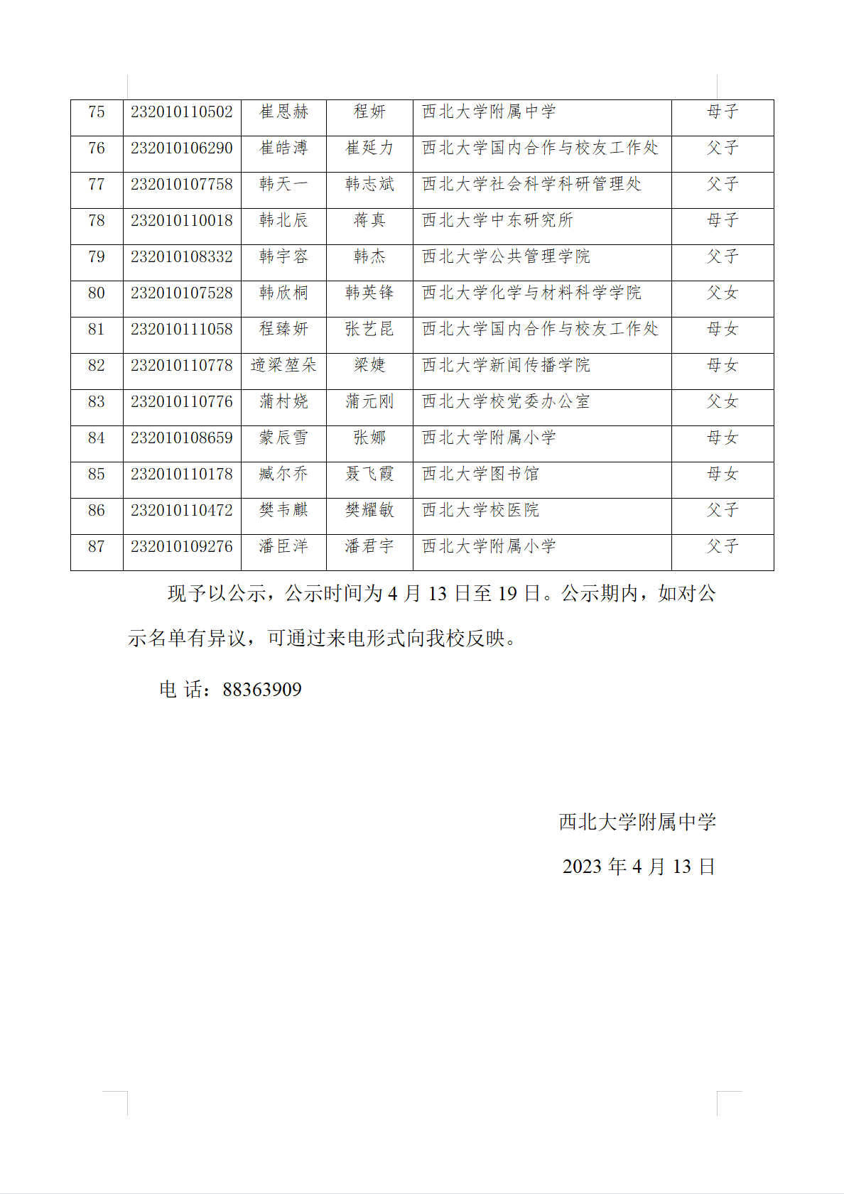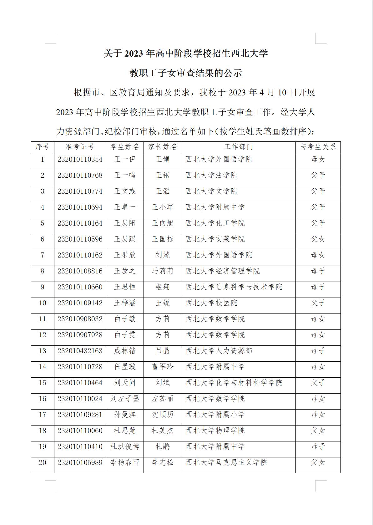 关于2023年高中阶段学校招生星空app官网教职工子女审查结果的公示