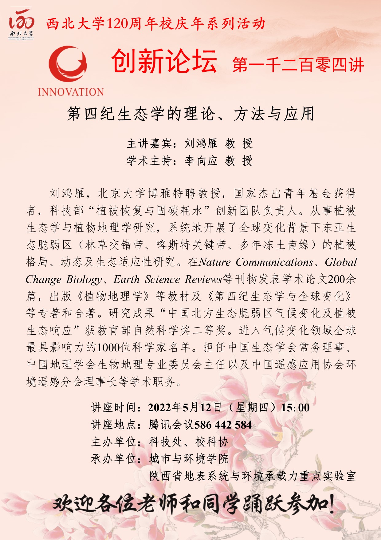 星空app官网创新论坛第一千二百零四讲暨120周年校庆年系列活动:第四纪生态学的理论、方法与应用