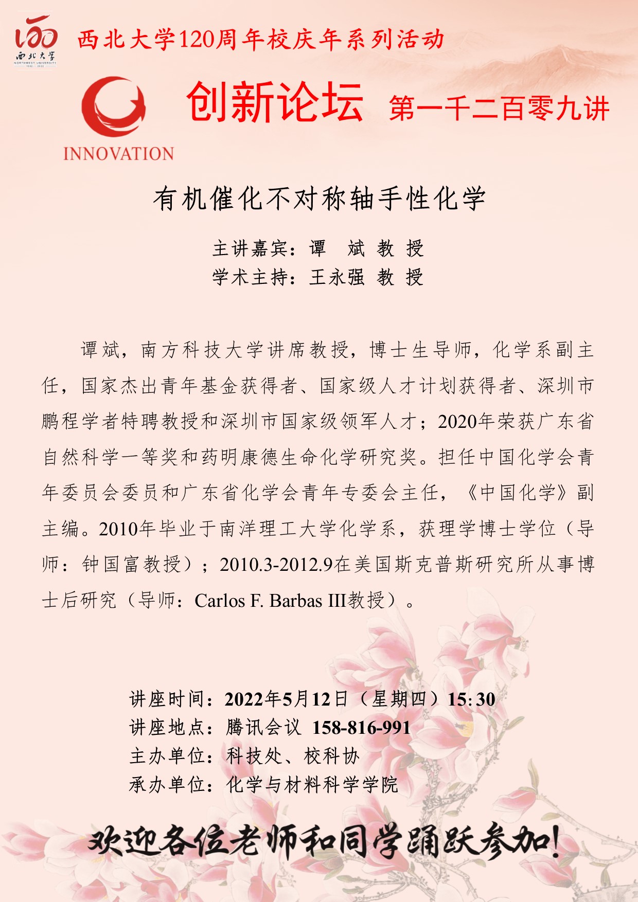 星空app官网创新论坛第一千二百一十讲暨120周年校庆年系列活动:多环天然产物合成中的环系构建