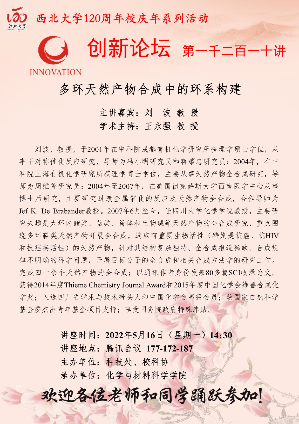 星空app官网创新论坛第一千二百一十讲暨120周年校庆年系列活动:多环天然产物合成中的环系构建