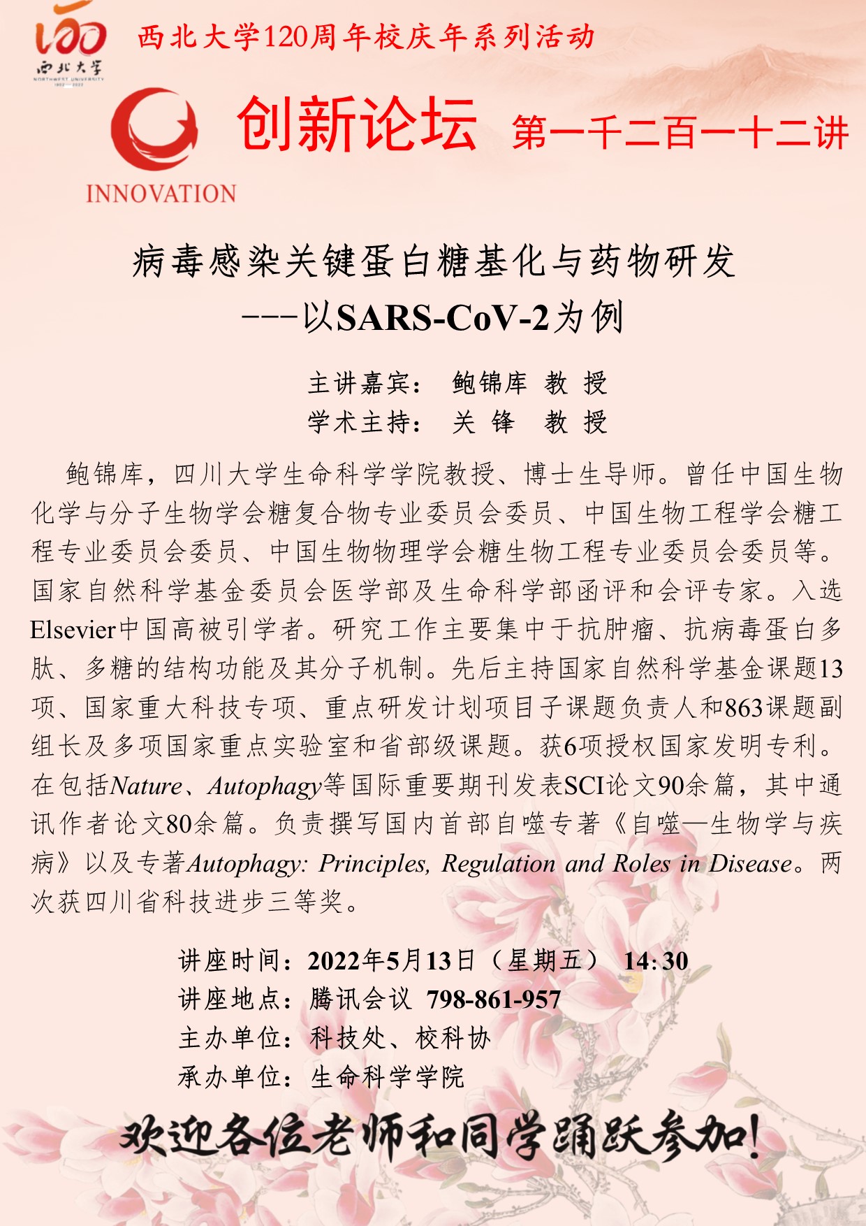 星空app官网创新论坛第一千二百一十二讲暨120周年校庆年系列活动:病毒感染关键蛋白糖基化与药物研发---以SARS-CoV-2为例