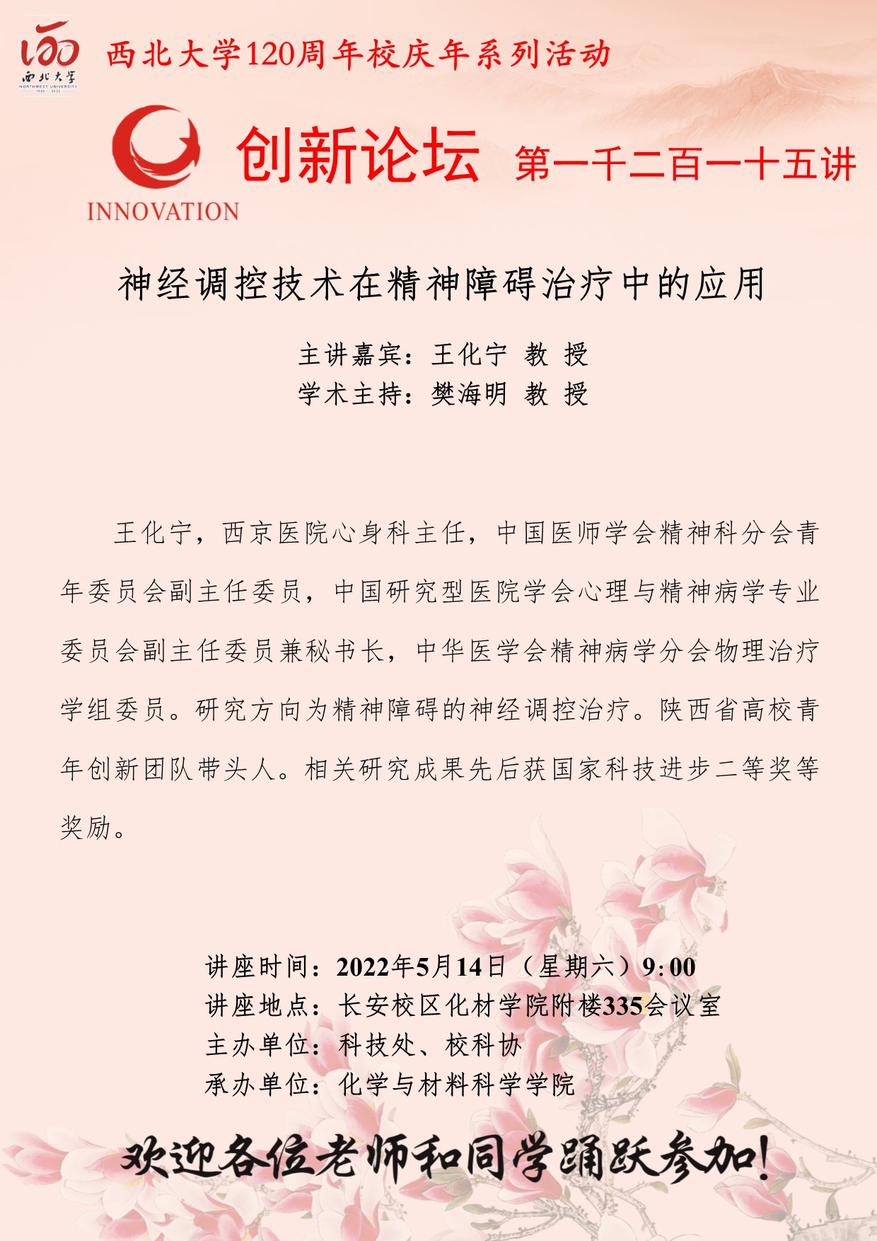 星空app官网创新论坛第一千二百一十五讲暨120周年校庆年系列活动:神经调控技术在精神障碍治疗中的应用