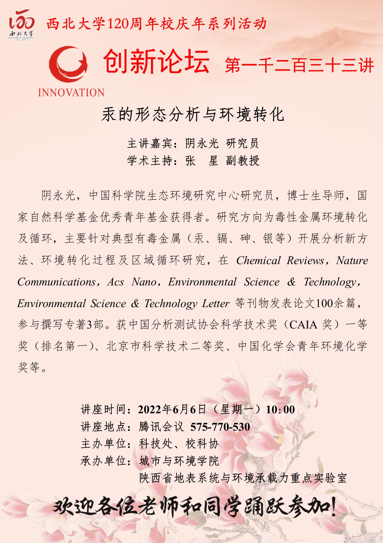 星空app官网创新论坛第一千二百三十三讲暨120周年校庆年系列活动:汞的形态分析与环境转化
