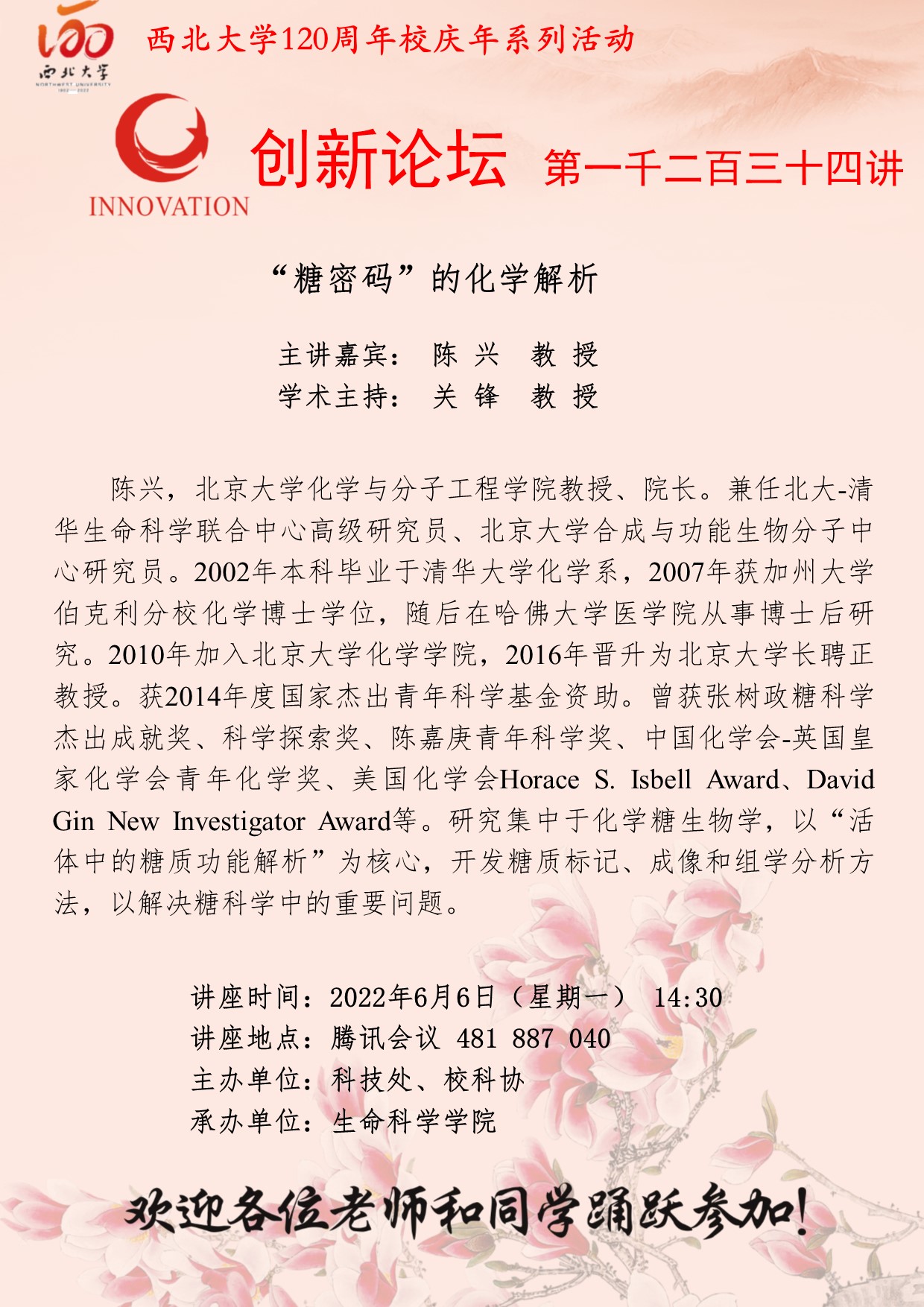 星空app官网创新论坛第一千二百三十四讲暨120周年校庆年系列活动:“糖密码”的化学解析