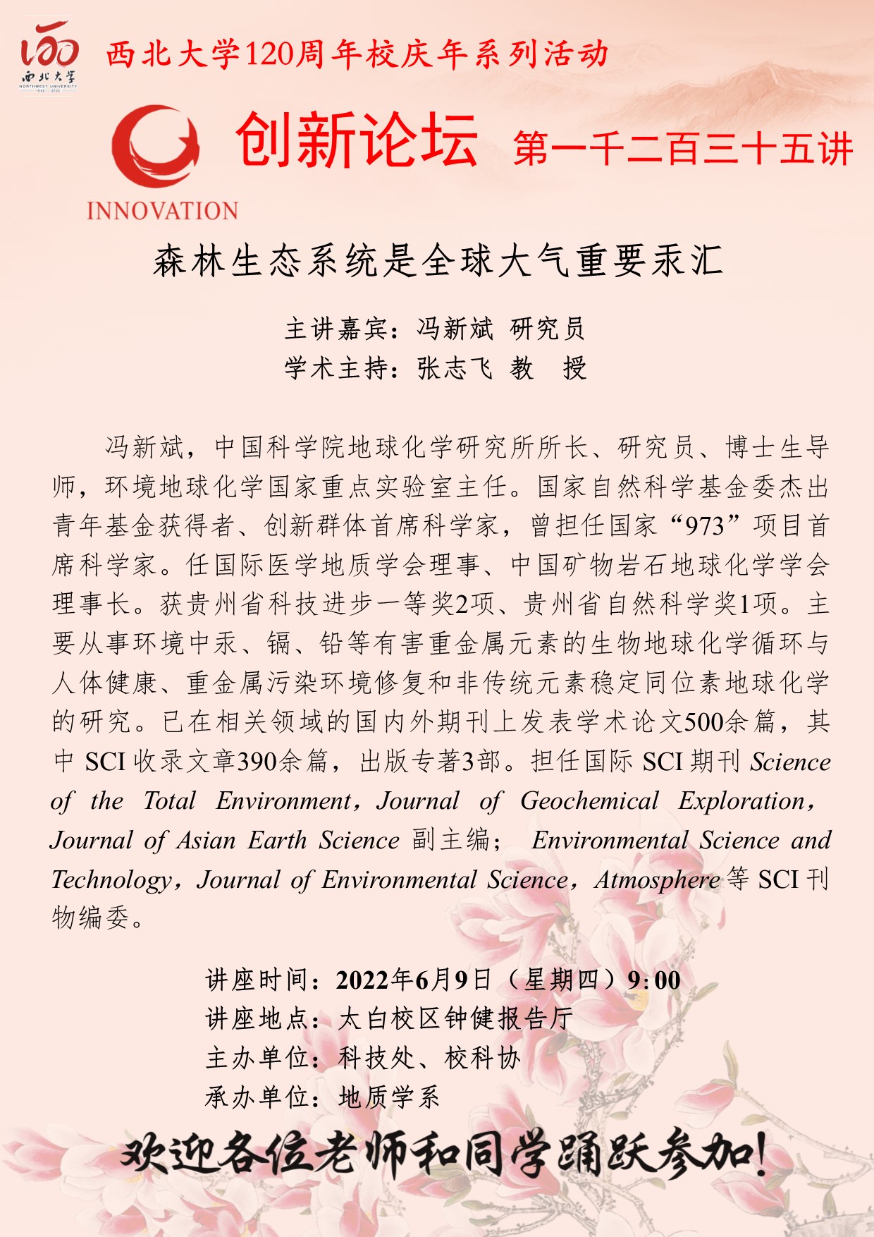 星空app官网创新论坛第一千二百三十五讲暨120周年校庆年系列活动:森林生态系统是全球大气重要汞汇