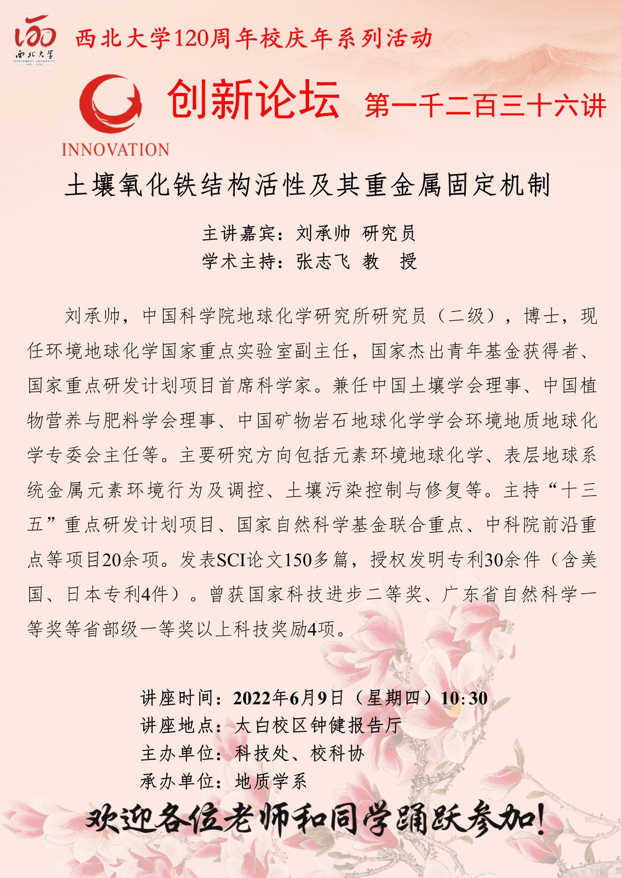 星空app官网创新论坛第一千二百三十六讲暨120周年校庆年系列活动:土壤氧化铁结构活性及其重金属固定机制