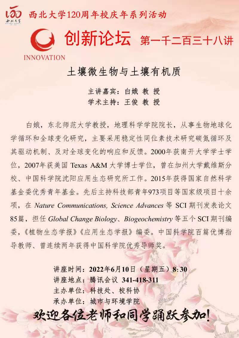 星空app官网创新论坛第一千二百三十八讲暨120周年校庆年系列活动:土壤微生物与土壤有机质