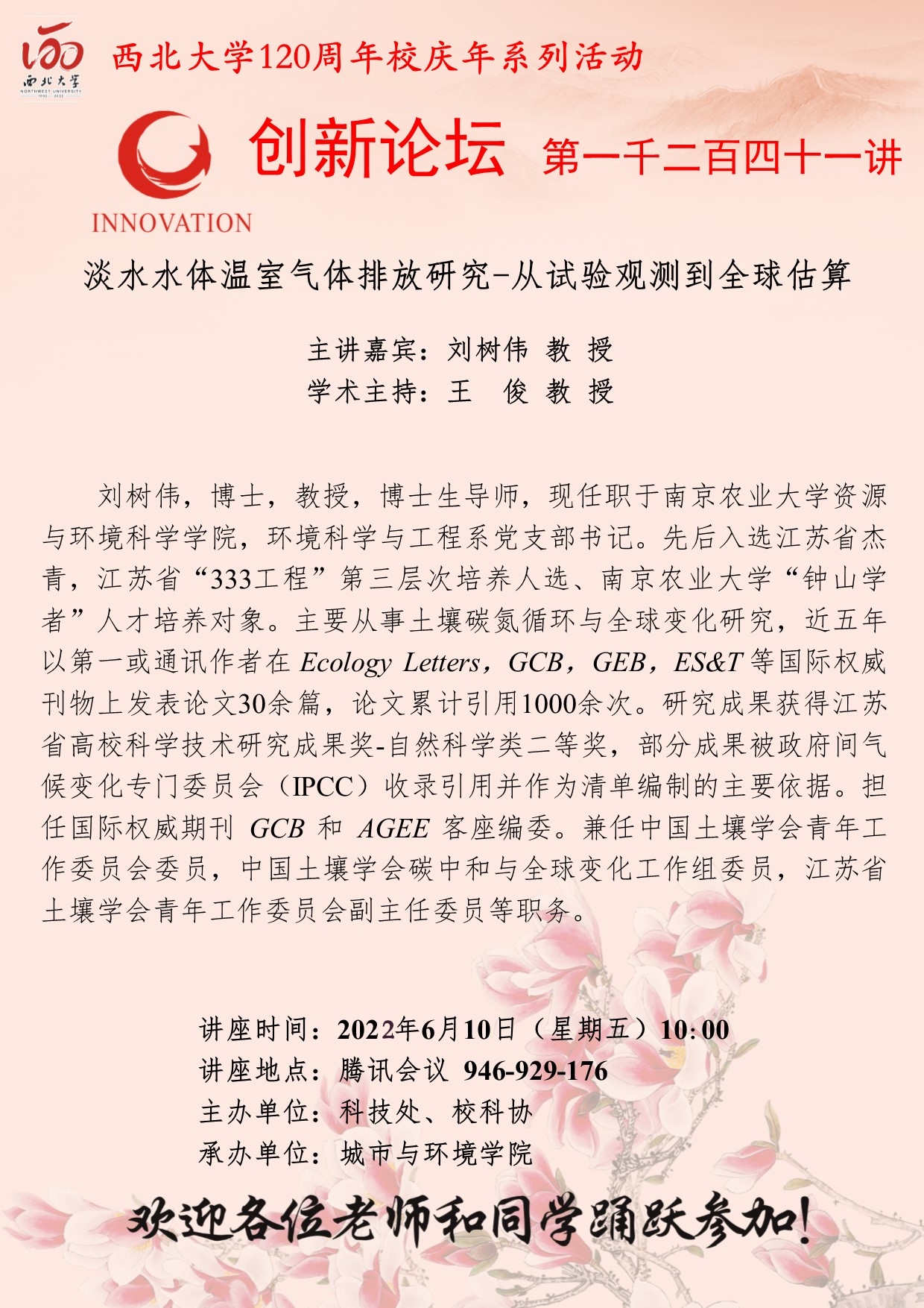 星空app官网创新论坛第一千二百四十一讲暨120周年校庆年系列活动:淡水水体温室气体排放研究-从试验观测到全球估算