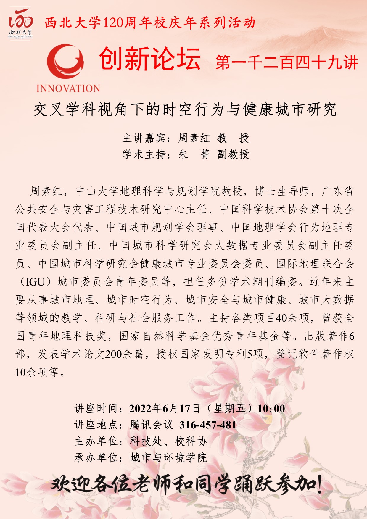 星空app官网创新论坛第一千二百四十九讲暨120周年校庆年系列活动:交叉学科视角下的时空行为与健康城市研究