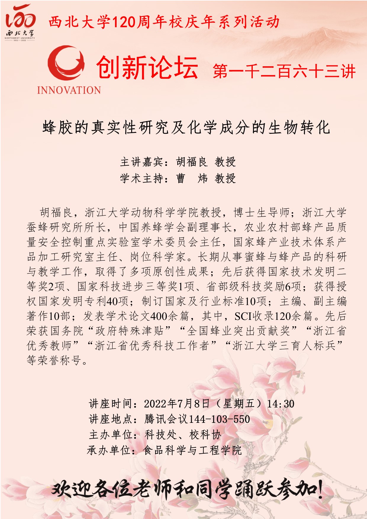 星空app官网创新论坛第一千二百六十三讲暨120周年校庆年系列活动:蜂胶的真实性研究及化学成分的生物转化