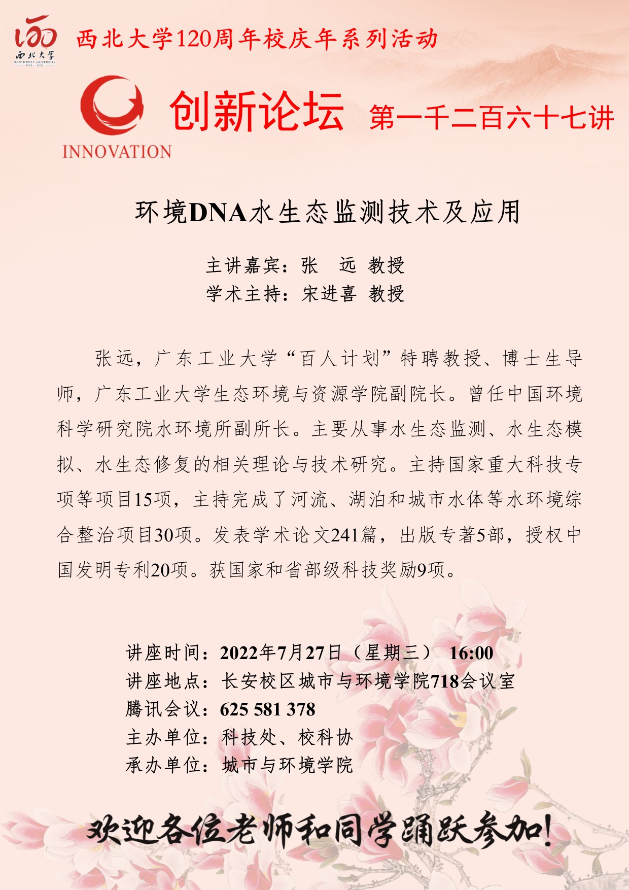 星空app官网创新论坛第一千二百六十七讲暨120周年校庆年系列活动:环境DNA水生态监测技术及应用