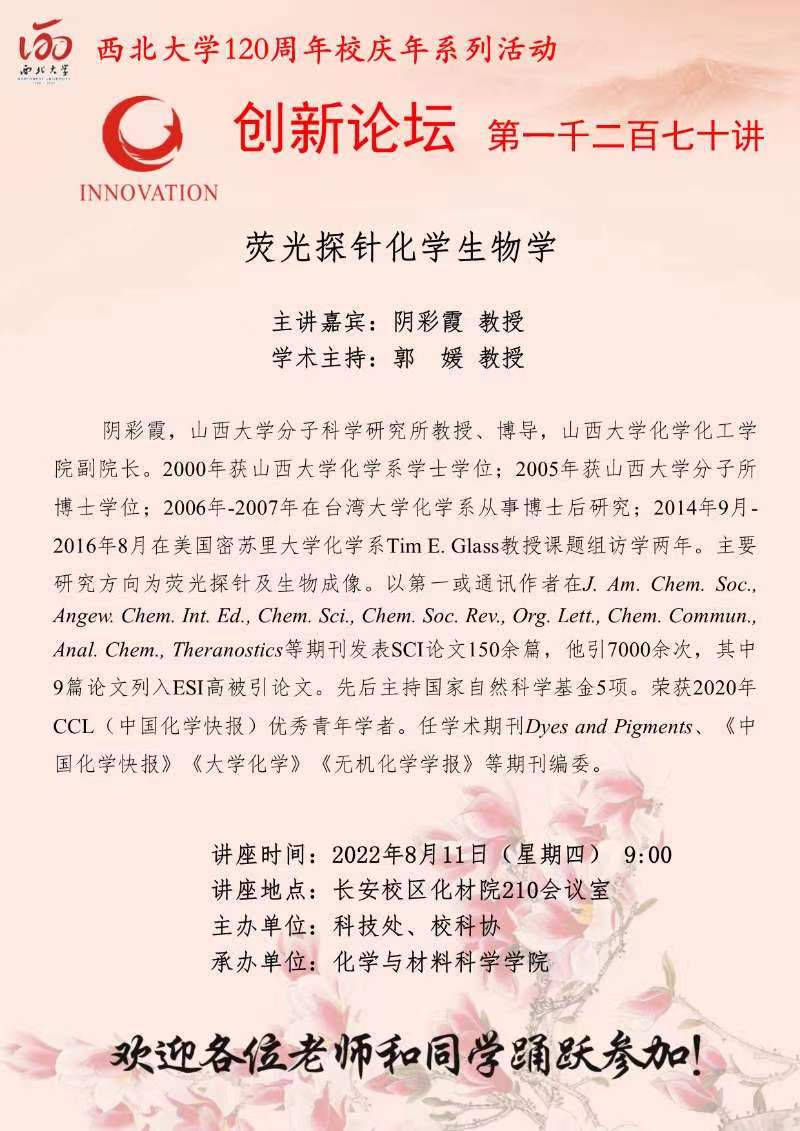 星空app官网创新论坛第一千二百七十讲暨120周年校庆年系列活动:荧光探针化学生物学