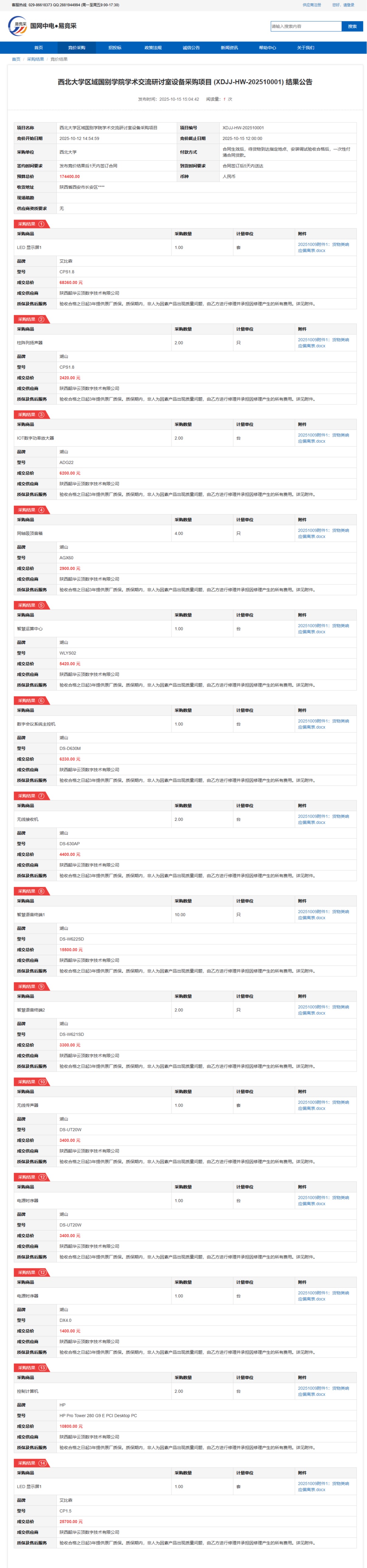 星空app官网区域国别学院学术交流研讨室设备采购项目(XDJJ-HW-202510001)竞价结果公告