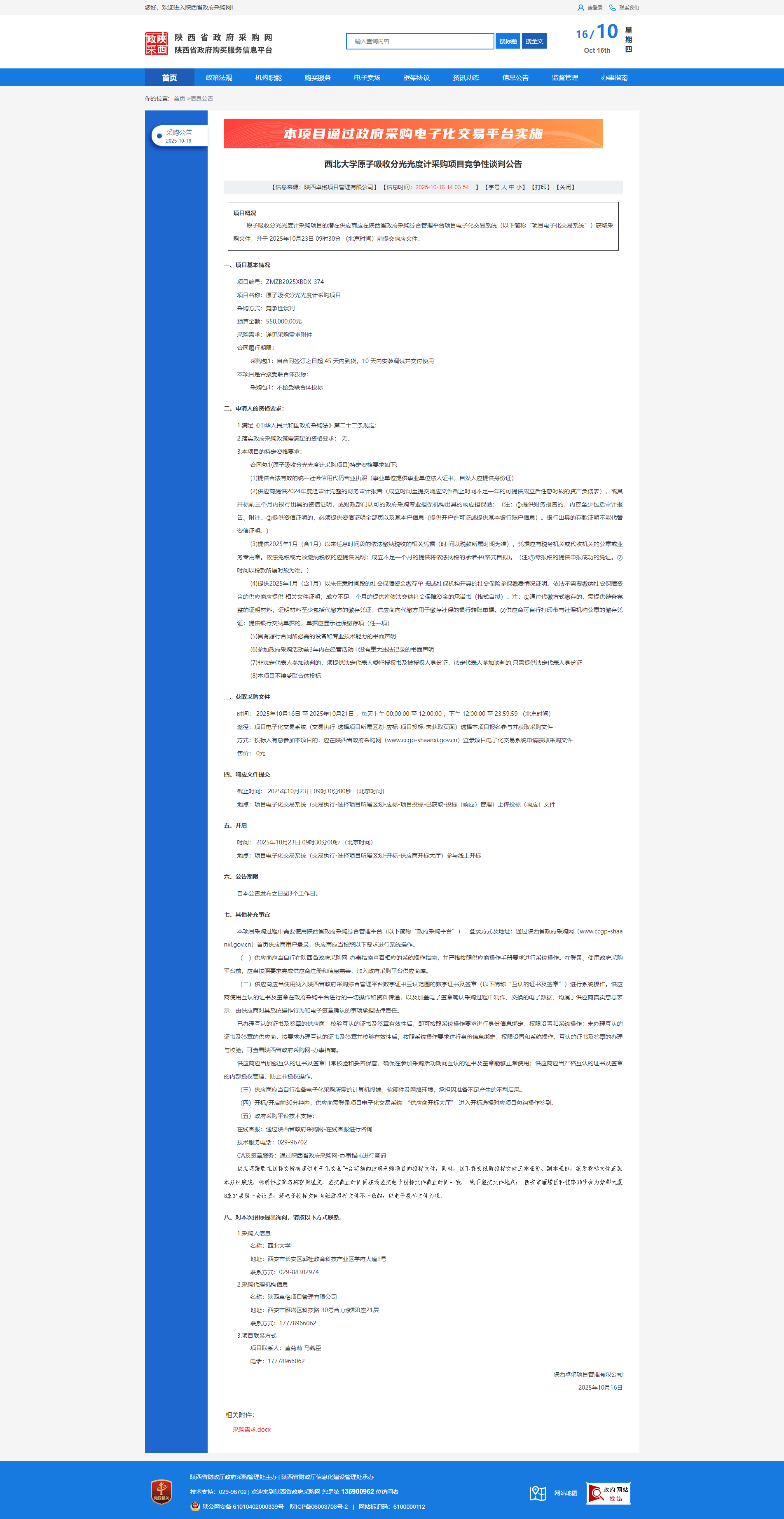 星空app官网原子吸收分光光度计采购项目竞争性谈判公告