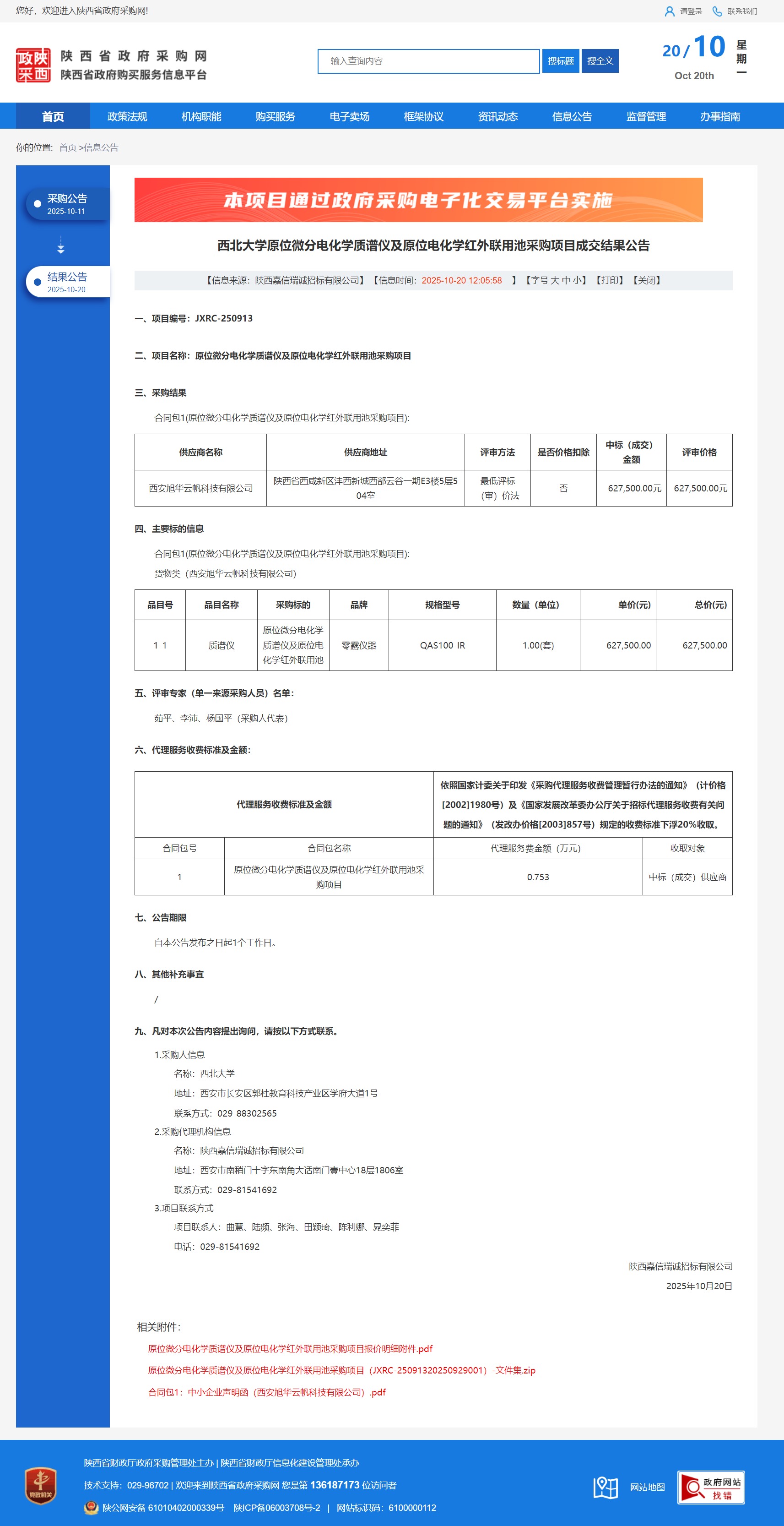 星空app官网原位微分电化学质谱仪及原位电化学红外联用池采购项目成交结果公告
