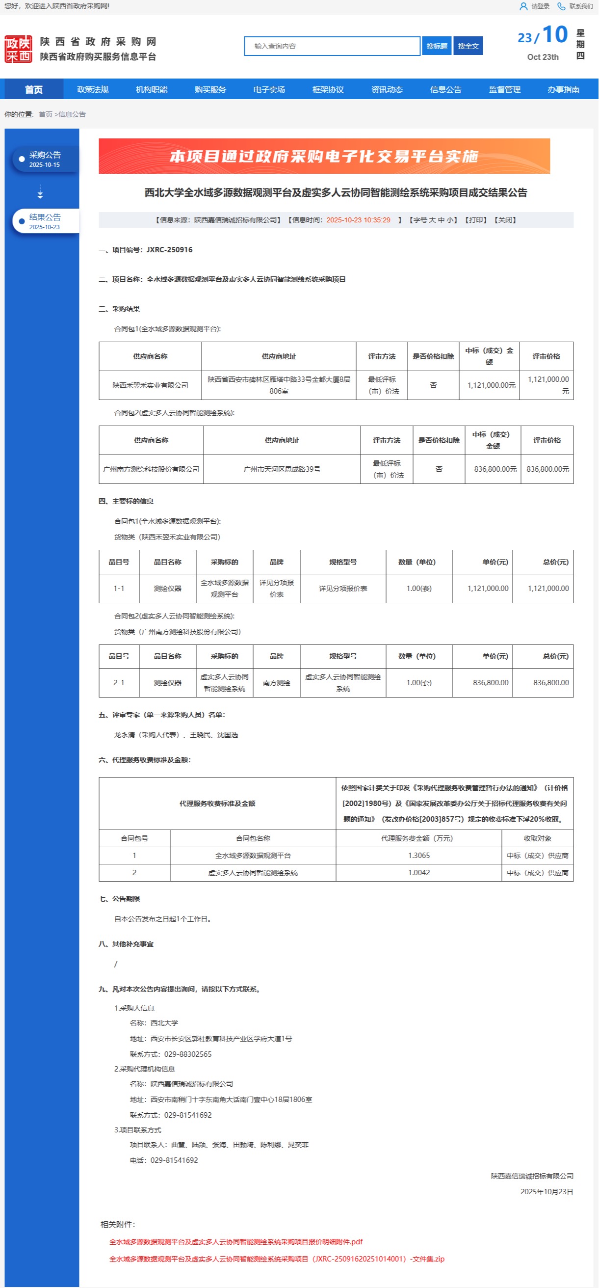 星空app官网全水域多源数据观测平台及虚实多人云协同智能测绘系统采购项目成交结果公告